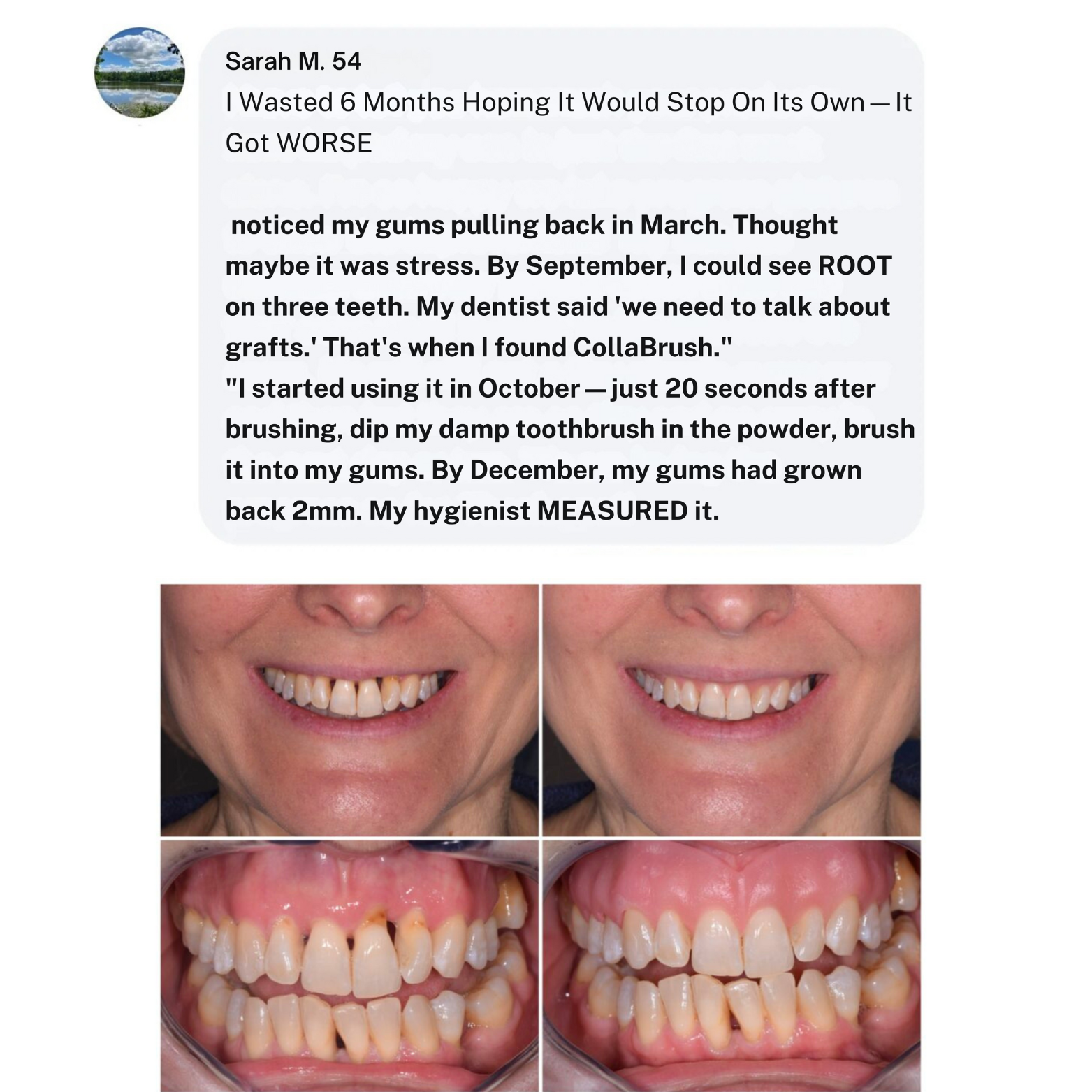 CollaBrush™ is a smile-strengthening collagen powder you brush directly into your gums and enamel.